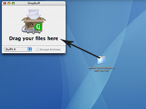 次に、入稿したいデータを下図の様に圧縮ソフトにドラッグして下さい。圧縮が始まります。